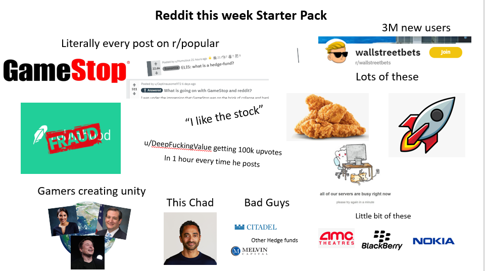 Joining Reddit This Week Starter Pack R Starterpacks Wallstreetbets Gamestop Short Squeeze Know Your Meme